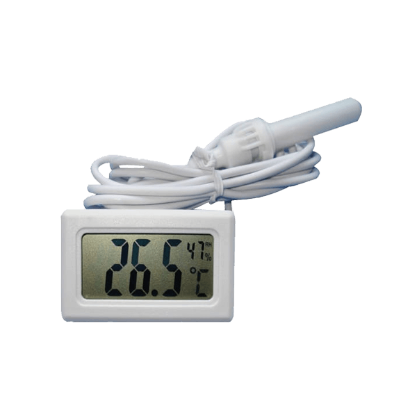 Termomeeter ja hüdromeeter ühes seadmes on ideaalne kasvuhoone temperatuuri mõõtmiseks. Tänu 1 m pikkusele kaablile kinnitatud andurile saame mõõta temperatuuri ja niiskust suletud ruumis ning jälgida näiteid teises ruumis.
