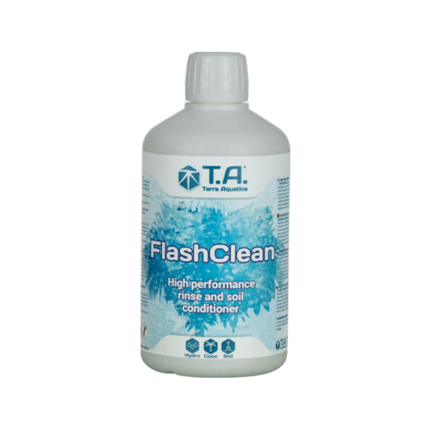 Terra Aquatica FlashClean on vedelik, mis puhastab kasvukeskkonna, taastab kasvukeskkonna tervisliku mikrofloorat ja eemaldab soolad ja muud väetisjäägid. See on eriti oluline mitte ainult süsteemis taimede vahetamisel, vaid ka suurepärase saagikvaliteedi tagamiseks, kuna puhas süsteem tagab taimele ideaalse juurdepääsu olulistele toitainetele.