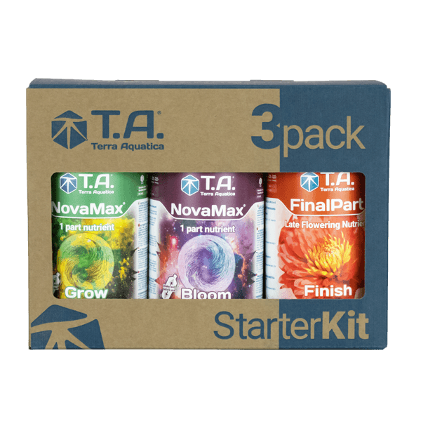 Komplekt sisaldab Terra Aquatica NovaMax Grow 500 ml kasvu soodustavat väetist, Terra Aquatica NovaMax Bloom 500 ml õitsemist soodustavat väetist, Terra Aquatica FinalPart 500 ml valmimist soodustavat väetist ja pakki vee pH-taset alandavat pulbrit.