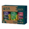 Komplekt sisaldab Terra Aquatica TriPart Flora Micro mineraalväetist (500 ml), Terra Aquatica TriPart Flora Grow kasvu soodustavat väetist (500 ml), Terra Aquatica TriPart Flora Bloom õitsemist soodustavat väetist (500 ml) ja pakki vee pH-taset alandavat pulbrit. Koos kasutades toidavad need taimi kogu nende kasvutsükli vältel: